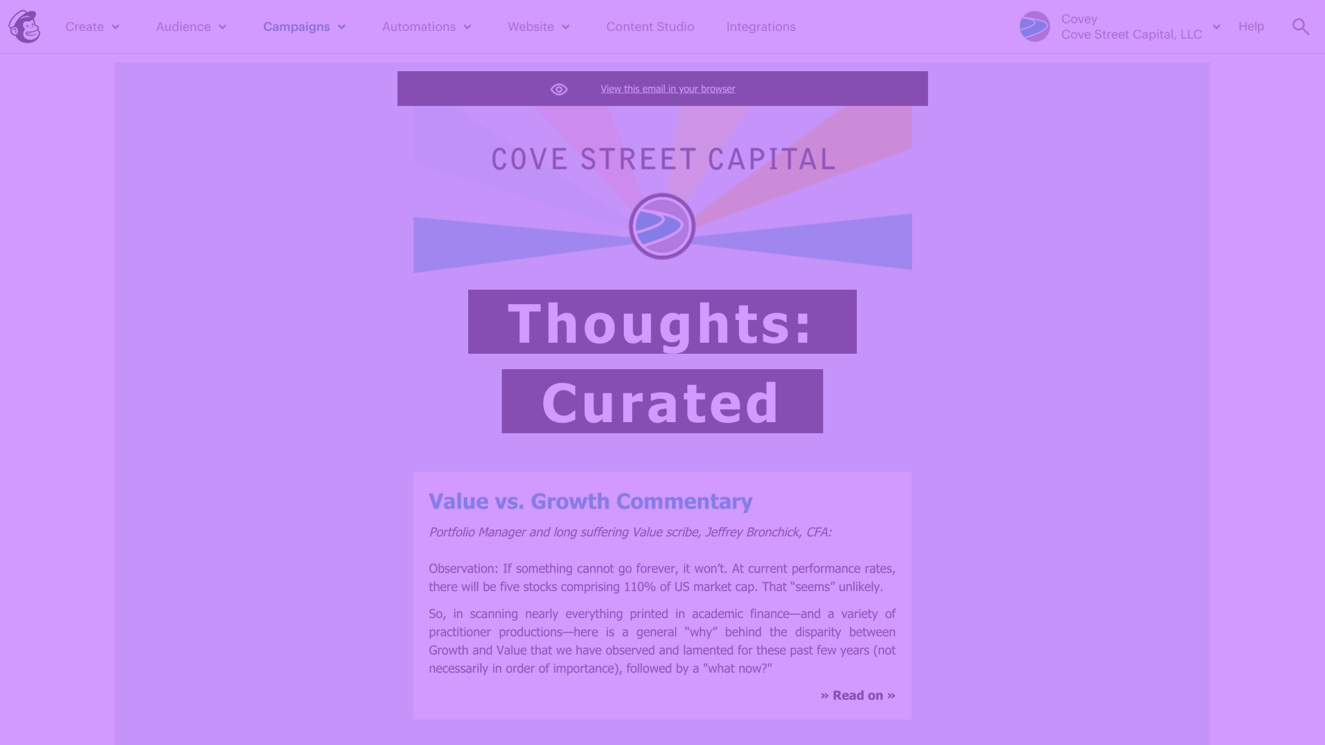 Cove Street Capital (CSC) is an L.A.-based Value Investment shop where I created and managed our design assets in-house, from the company’s founding spin off from a larger firm in July 2011 until October 2020.